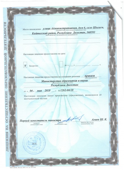 | Адрес местонахождения образовательной организации* | 368593 Р. Дагестан, Кайтагский район, С. Шиляги, ул. Административная 6 |